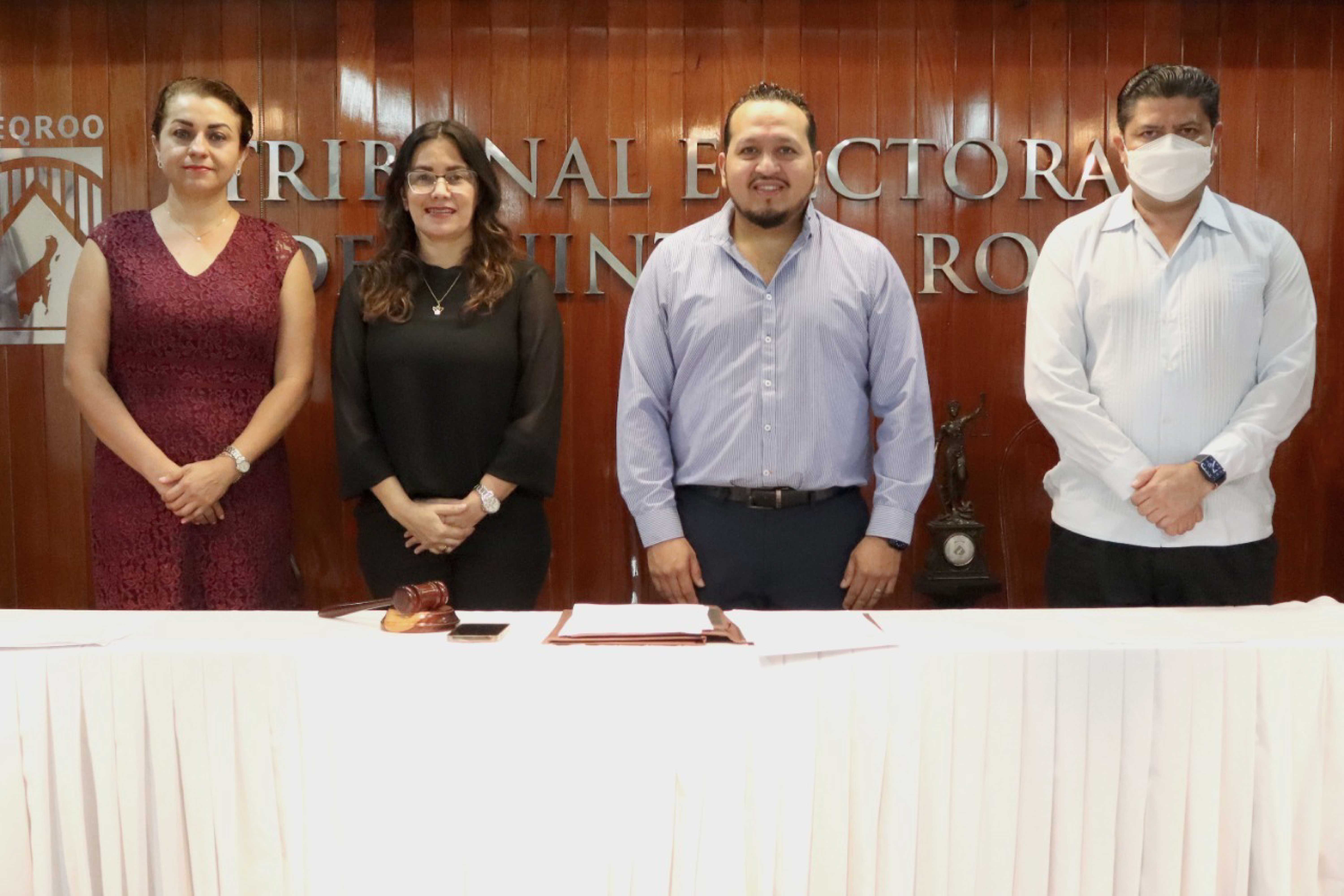 Chetumal, Quintana Roo a 26 de septiembre de 2022.- El Magistrado Presidente del Tribunal Electoral de Quintana Roo, Sergio Avilés Demeneghi, la Magistrada Claudia Carrillo Gasca y el Magistrado Víctor Vivas Vivas presidieron la toma de protesta de Martha Patricia Villar Peguero como Jefa de la Unidad de Legislación y Jurisprudencia.