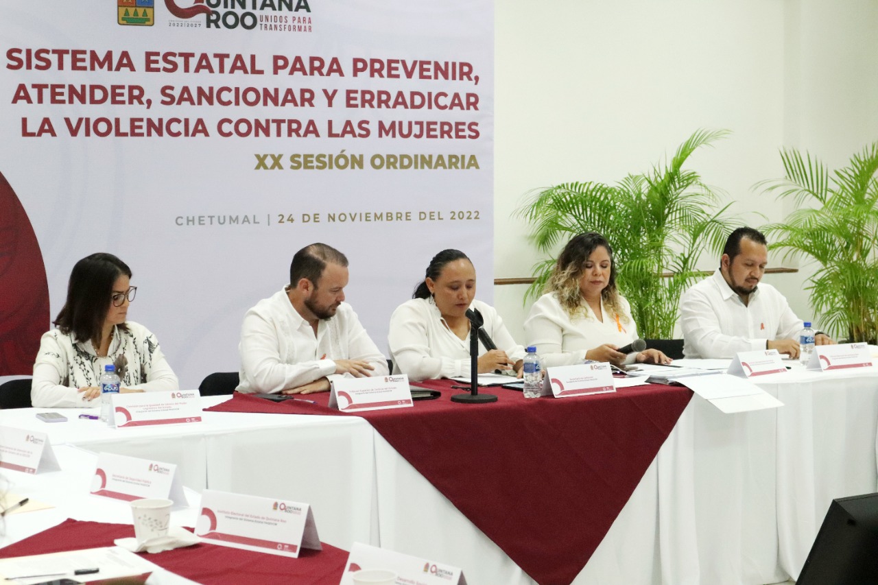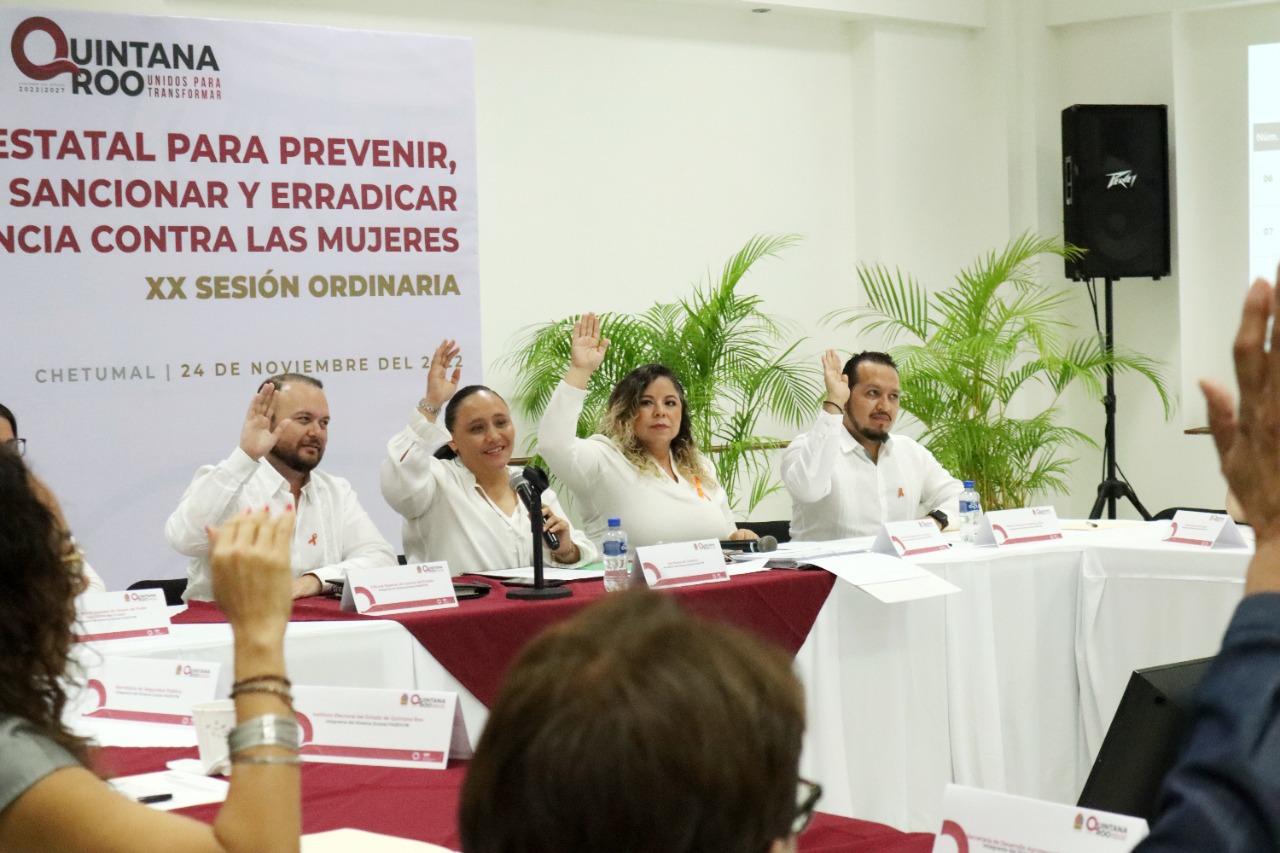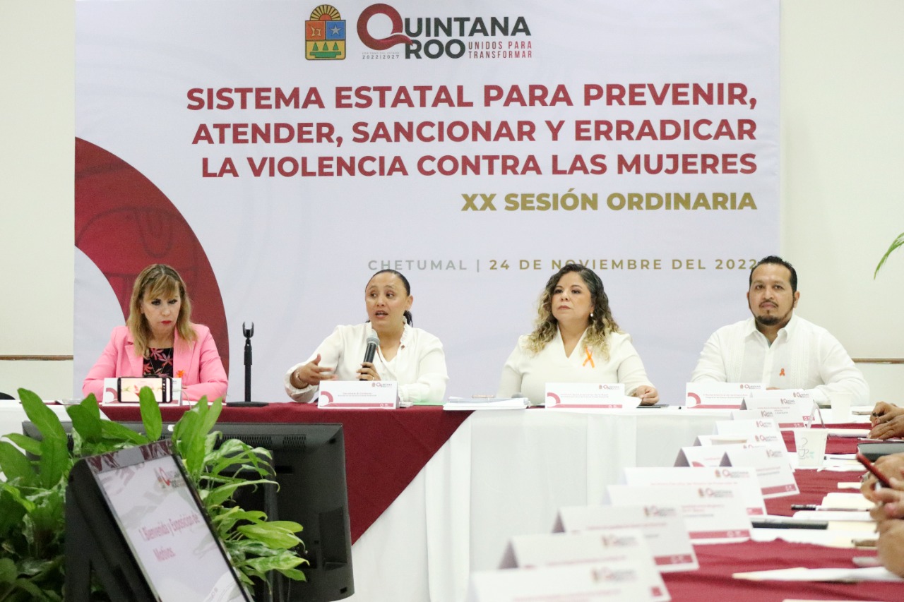 Esta reunión de trabajo fue convocada por la Directora General del Instituto Quintanarroense de la Mujer, María Hadad Castillo, a la que también asistieron autoridades del Poder Judicial del Estado, del Congreso del Estado y de las diversas Secretarías que conforman el Gobierno del Estado.