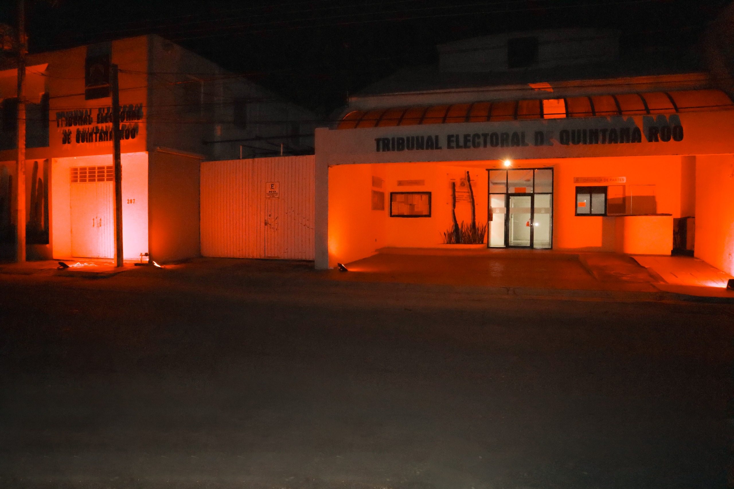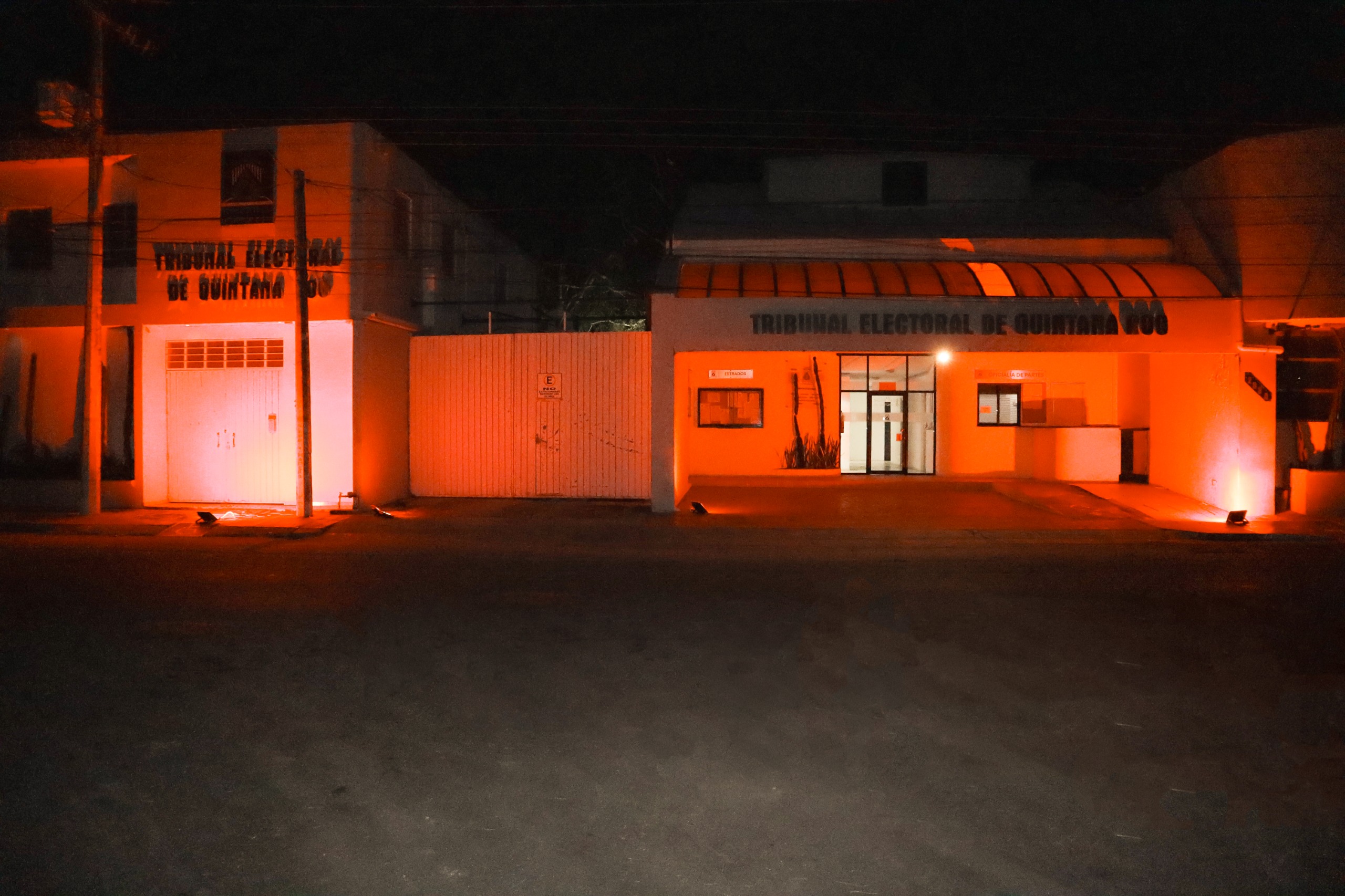 El TEQROO se ilumina de Naranja, en el marco del Día Internacional de la Eliminación de la Violencia contra la Mujer