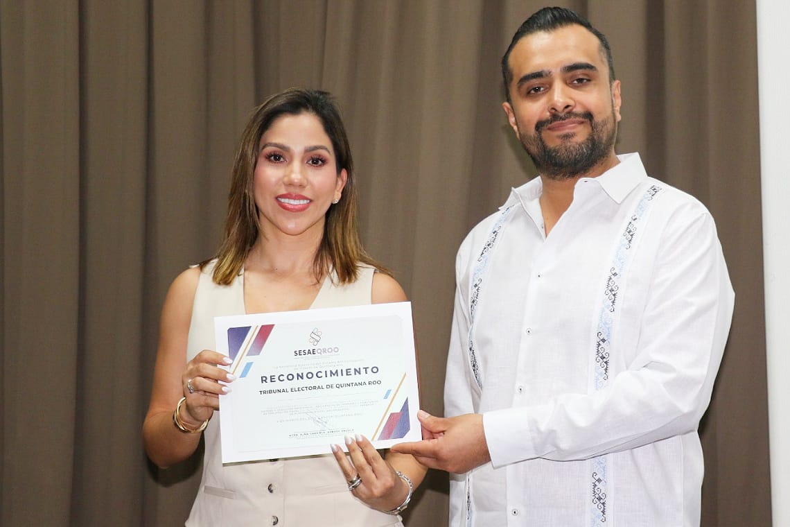 En el marco de este evento, la Titular del OIC, Ilse Berenice Cossío Lugo recibió el reconocimiento que le otorgaron al TEQROO, por haber logrado la interconexión a la Plataforma Digital Nacional en el Sistema de Declaraciones Patrimoniales.