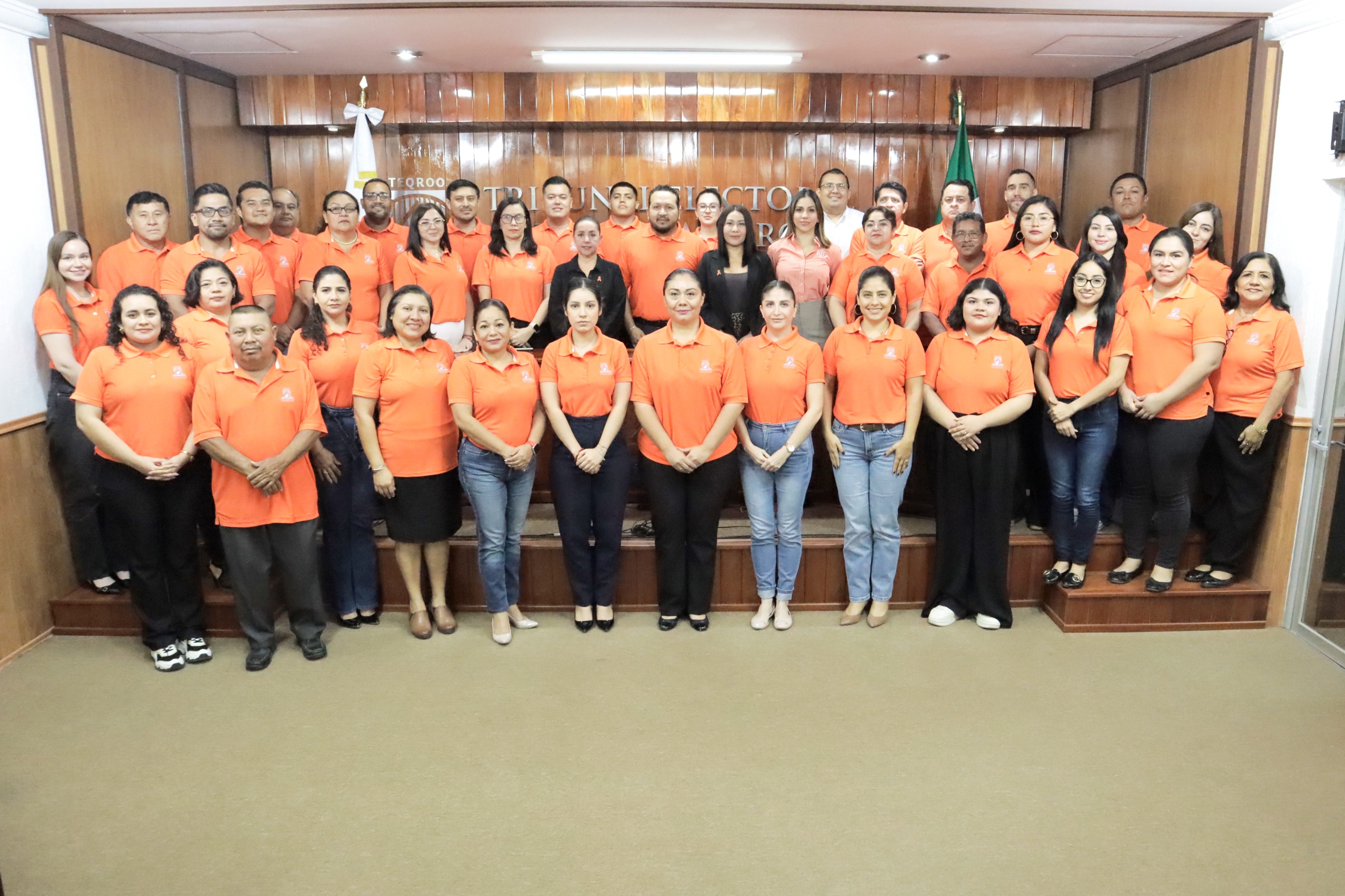 Chetumal, Quintana Roo, a 25 de marzo de 2025.- En el marco del Día Naranja, establecido el 25 de cada mes para visibilizar la importancia de la prevención de la violencia de género, el Magistrado Presidente del Tribunal Electoral de Quintana Roo, Sergio Avilés Demeneghi, las Magistradas en Funciones, Maogany Crystel Acopa Contreras y María Sarahit Olivos Gómez, así como la Titular del Órgano Interno de Control, Ilse Berenice Cossío Lugo y el personal de la institución, portaron vestimenta naranja como una muestra simbólica de su compromiso con la promoción de la igualdad y el respeto a los derechos de las mujeres.