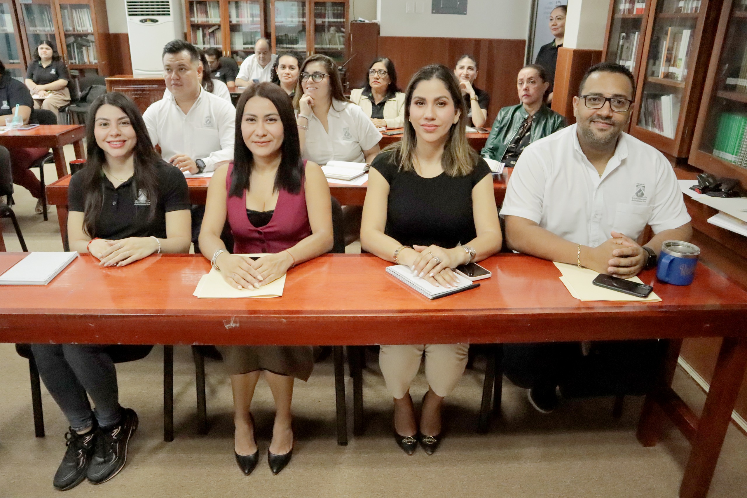 Al finalizar, las Magistradas en Funciones, Maogany Crystel Acopa Contreras y María Sarahit Olivos Gómez, fueron las encargadas de entregar el reconocimiento a la ponente, acompañadas de la Titular del Órgano Interno de Control (OIC), Ilse Berenice Cossío Lugo y el Encargado de la Coordinación de Archivo Institucional, Roberto Delfín Zamudio.