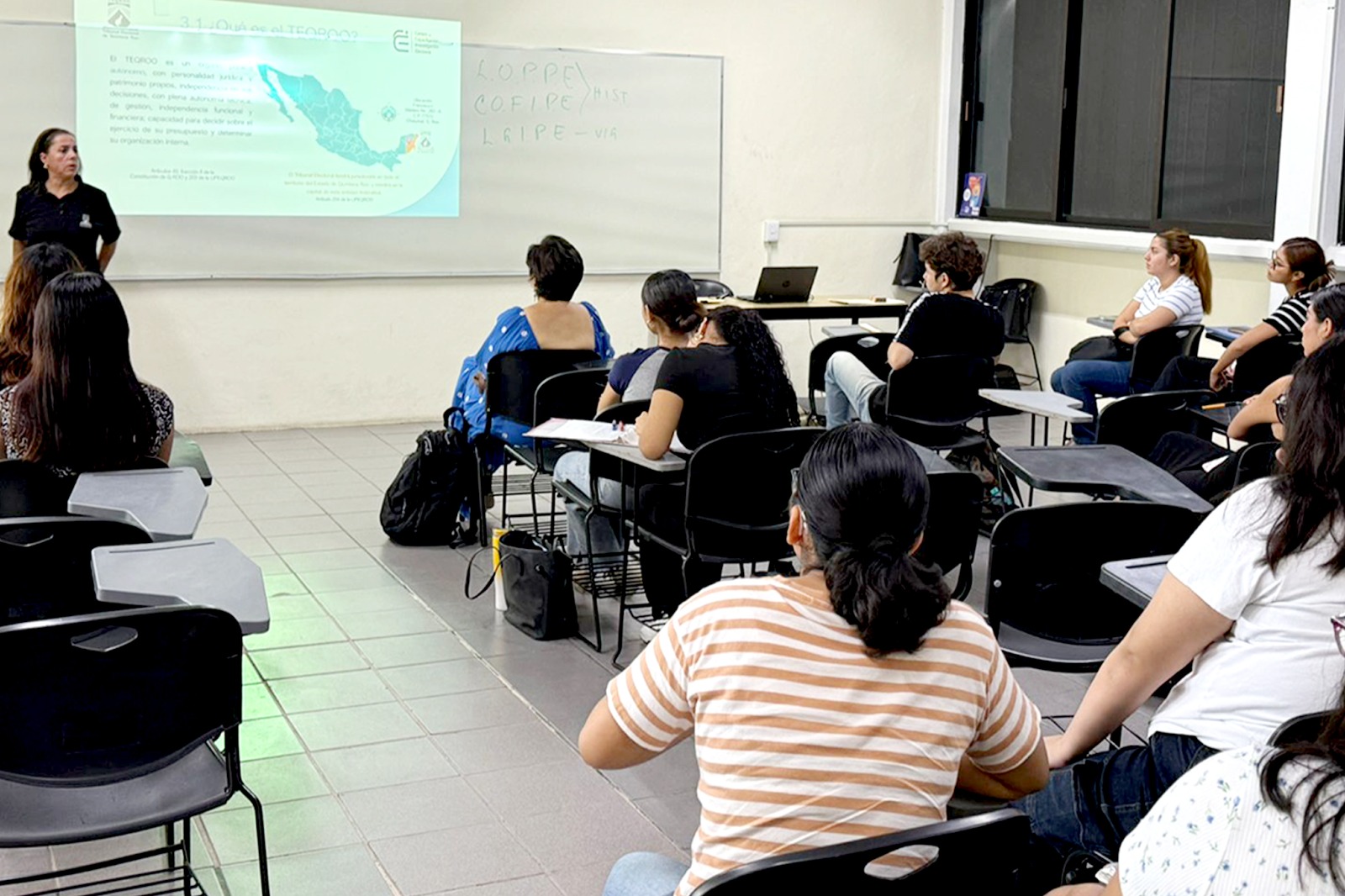 La actividad tuvo como objetivo acercar al estudiantado universitario al quehacer del órgano jurisdiccional electoral, brindándoles información sobre las atribuciones, funciones y alcances del TEQROO dentro del sistema democrático estatal.