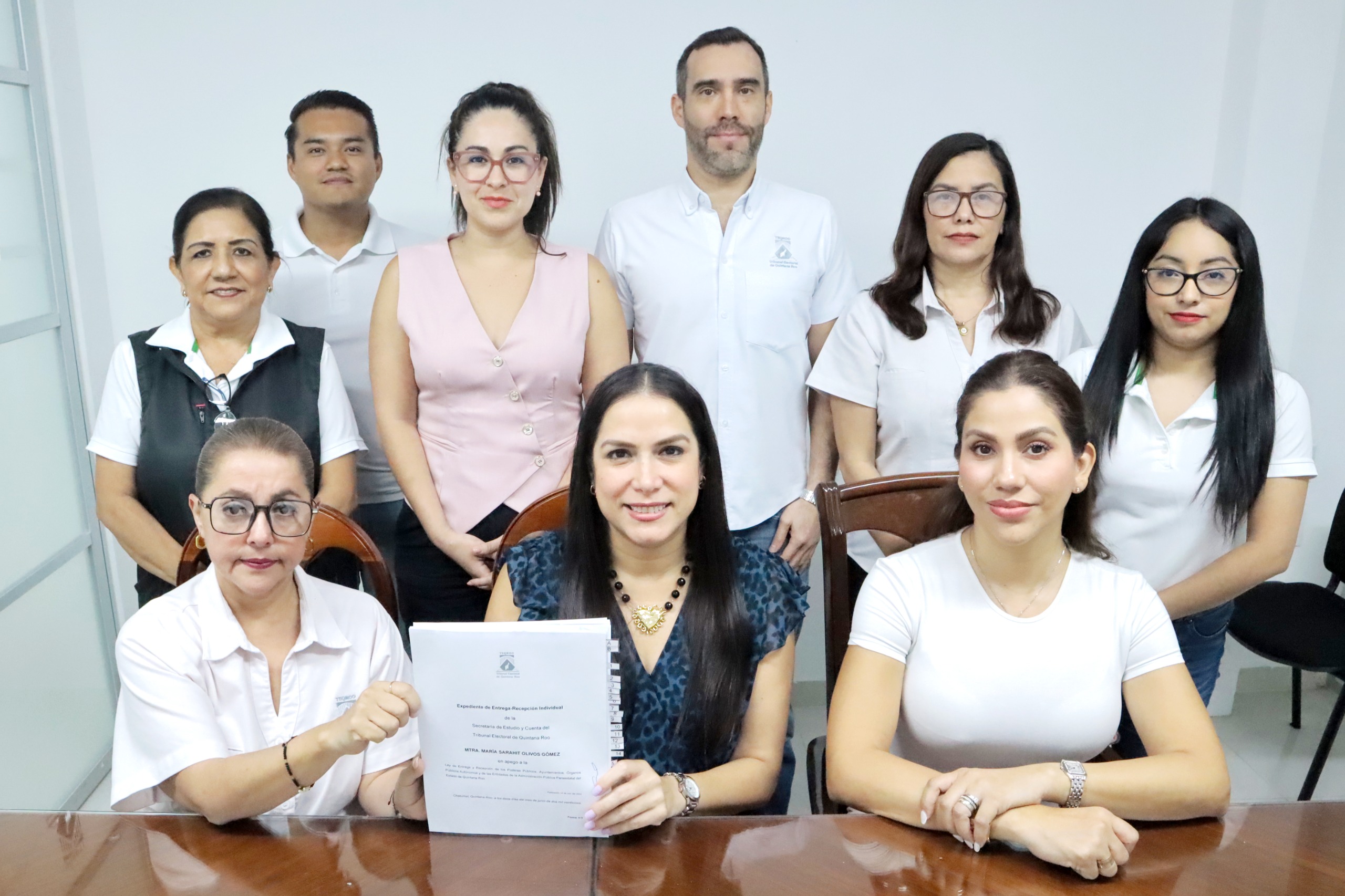 En la Sala de Juntas de la Presidencia, se realizó la firma del acta respectiva de dicha entrega recepción, en la que también estuvo presente el Jefe de Área de Control Normativo, Entrega Recepción y Archivo, Jesús Adrián Chim Guerrero, así como las y los testigos de cada una de las partes.
