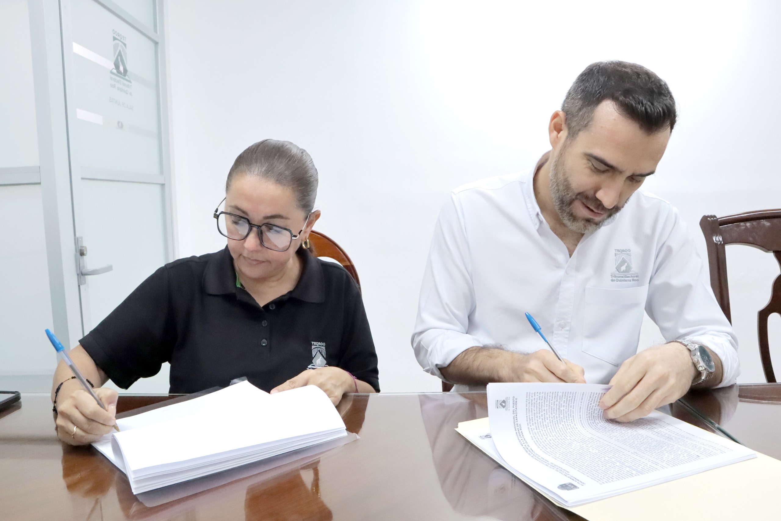 La firma del acta correspondiente tuvo lugar en la Sala de Juntas de la Presidencia, con la presencia del Jefe del Área de Control Normativo, Entrega-Recepción y Archivo, Jesús Adrián Chim Guerrero, así como las y los testigos designados por ambas partes.
