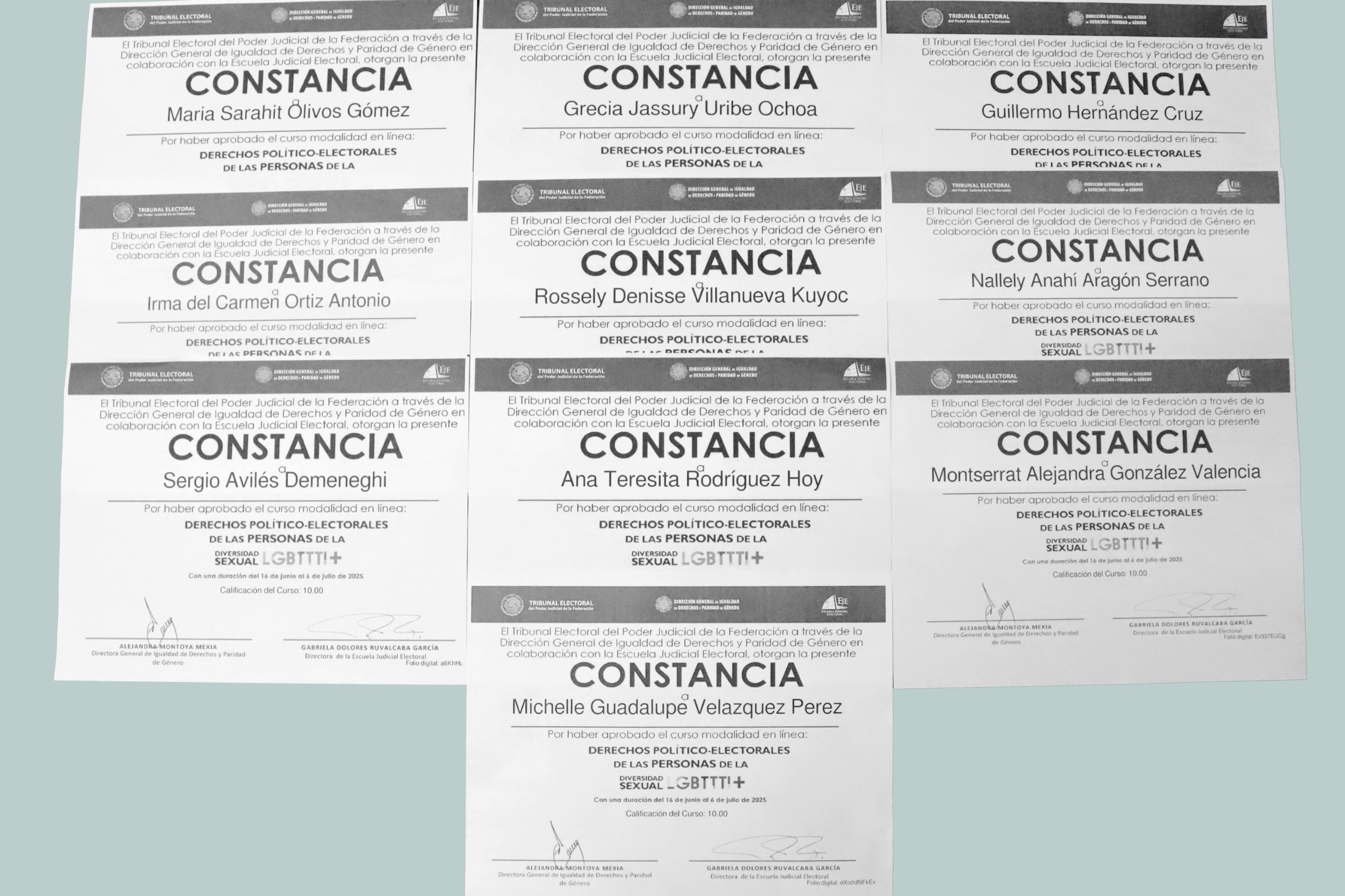 Al finalizar el curso, la institución capacitadora otorgó las constancias correspondientes a las y los servidores públicos electorales de este órgano jurisdiccional, siendo un total de 10 personas.
