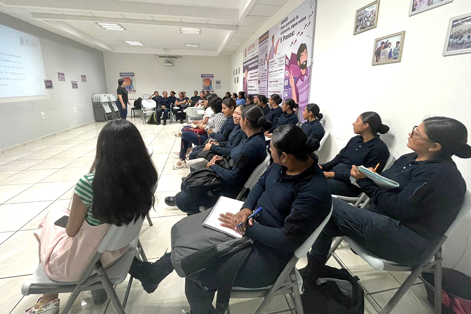 La bienvenida estuvo a cargo de la Jefa del Departamento de Nuevas Masculinidades de SEMUJERES, Nellely Yarime Martínez Bardales. También asistió Rossely Denisse Villanueva Kuyoc, Jefa de Área de Capacitación del Tribunal.
