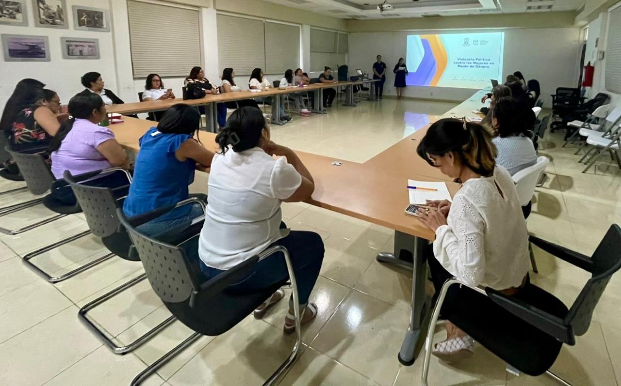 La actividad se llevó a cabo en la Sala de Juntas de la Secretaría, y estuvo a cargo de la Jefa de la Unidad de Capacitación e Investigación del TEQROO, Olga Tathiana González Morga, quien compartió información clave sobre este tipo de violencia, sus manifestaciones y el marco legal para prevenirla y sancionarla. También asistió Rossely Denisse Villanueva Kuyoc, Jefa de Área de Capacitación.