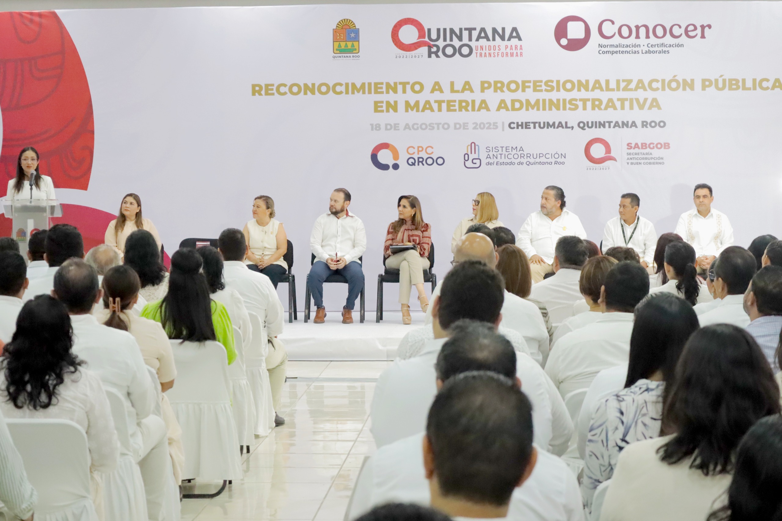 Chetumal, Quintana Roo, a 18 de agosto de 2025.- Personal del Órgano Interno de Control (OIC) del Tribunal Electoral de Quintana Roo (TEQROO) recibió un reconocimiento por su certificación en el Estándar de Competencia EC1556: “Realización de Acciones de Investigación de Responsabilidad de Faltas Administrativas”, durante el evento “Reconocimiento a la Profesionalización Pública en Materia Administrativa”, celebrado en el Auditorio de la Escuela Judicial del Poder Judicial del Estado de Quintana Roo.