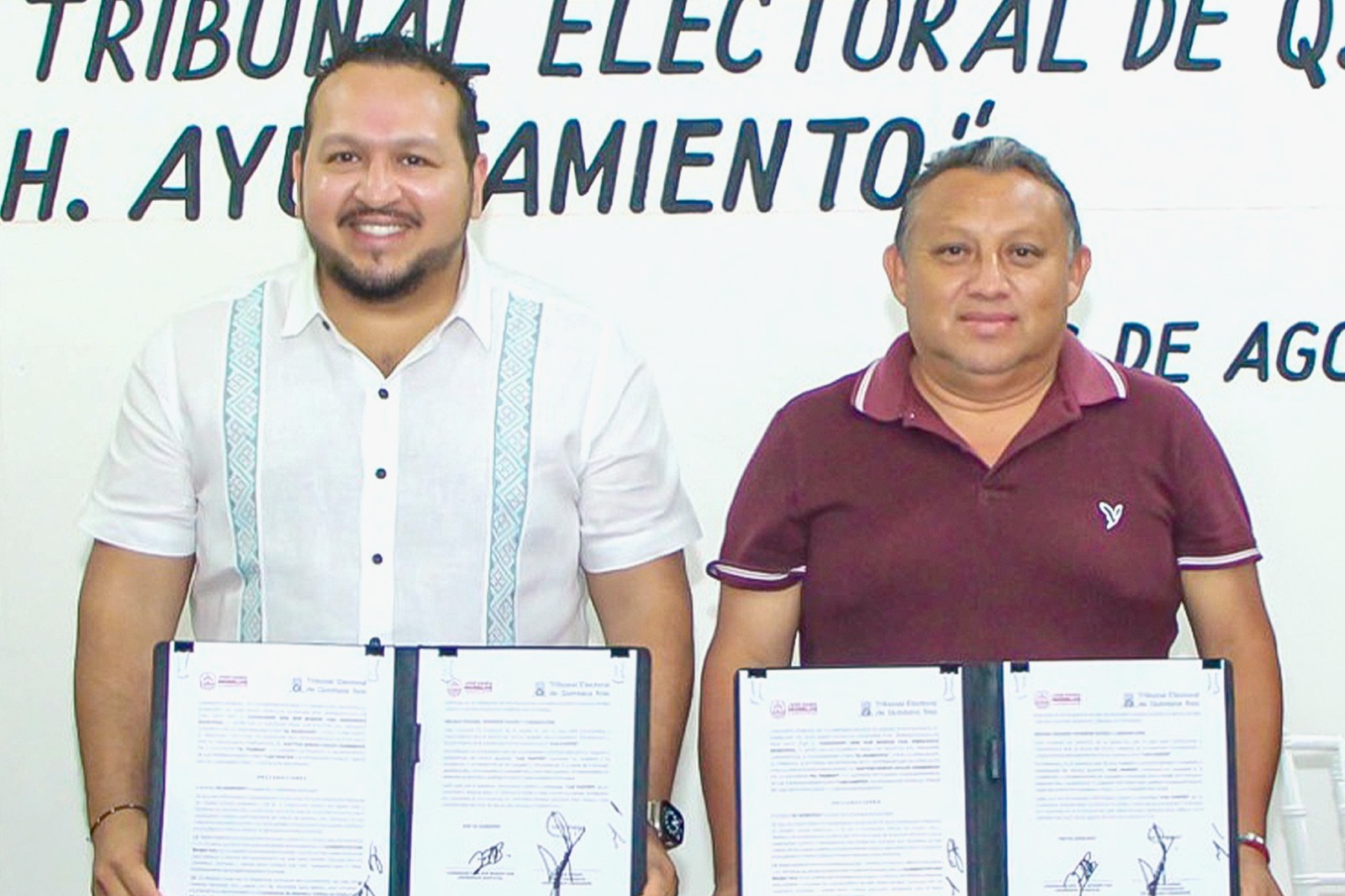 José María Morelos, Quintana Roo a 26 de agosto de 2025.- El Tribunal Electoral de Quintana Roo (TEQROO) y el Ayuntamiento de José María Morelos celebraron la firma de un convenio de colaboración con el propósito de fortalecer la cultura democrática y garantizar la promoción y defensa de los derechos político-electorales de la ciudadanía, especialmente de los grupos en situación de vulnerabilidad.
