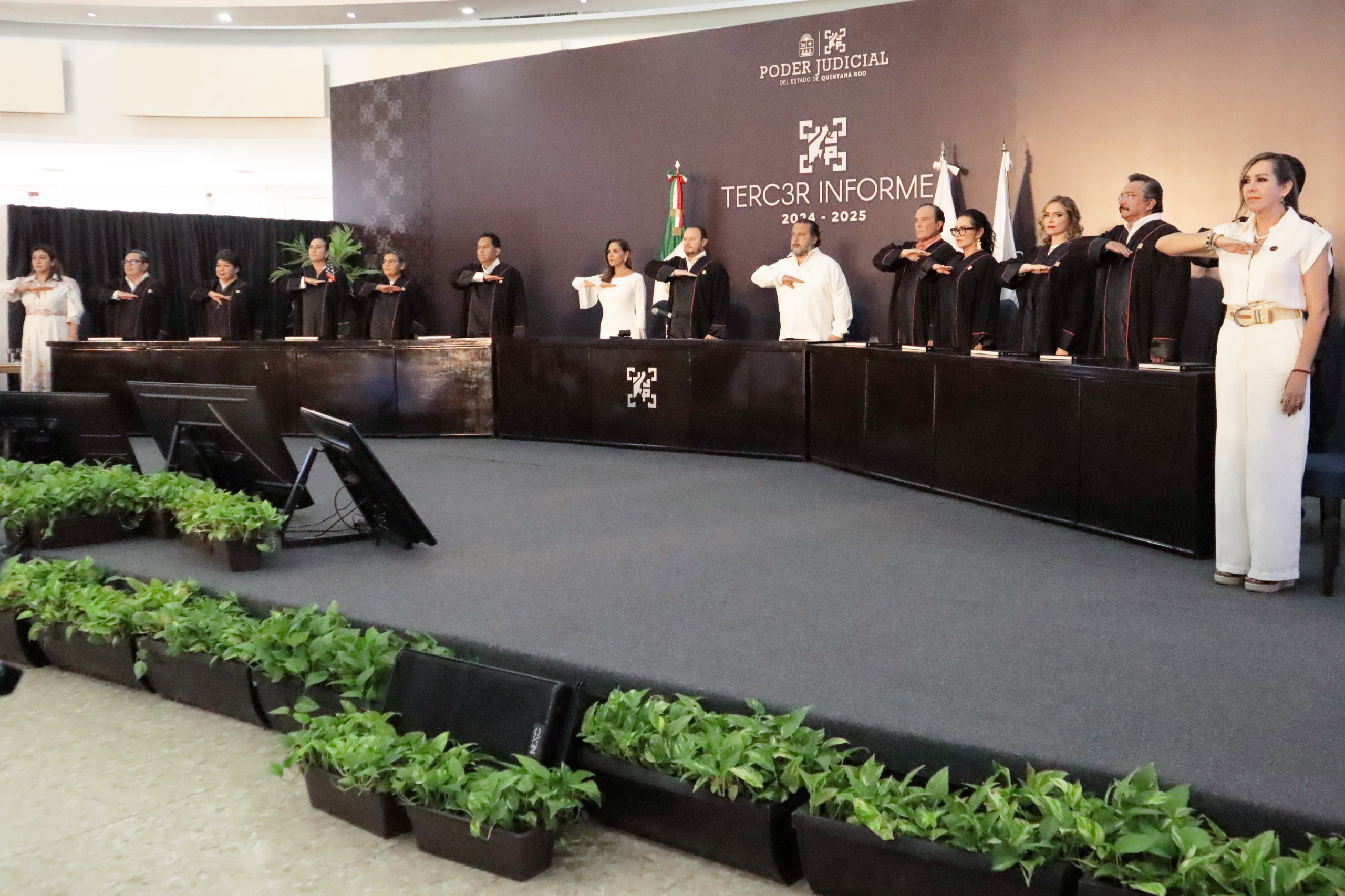 Integrantes del Pleno del TEQROO asisten al Tercer Informe de Actividades del Poder Judicial del Estado
