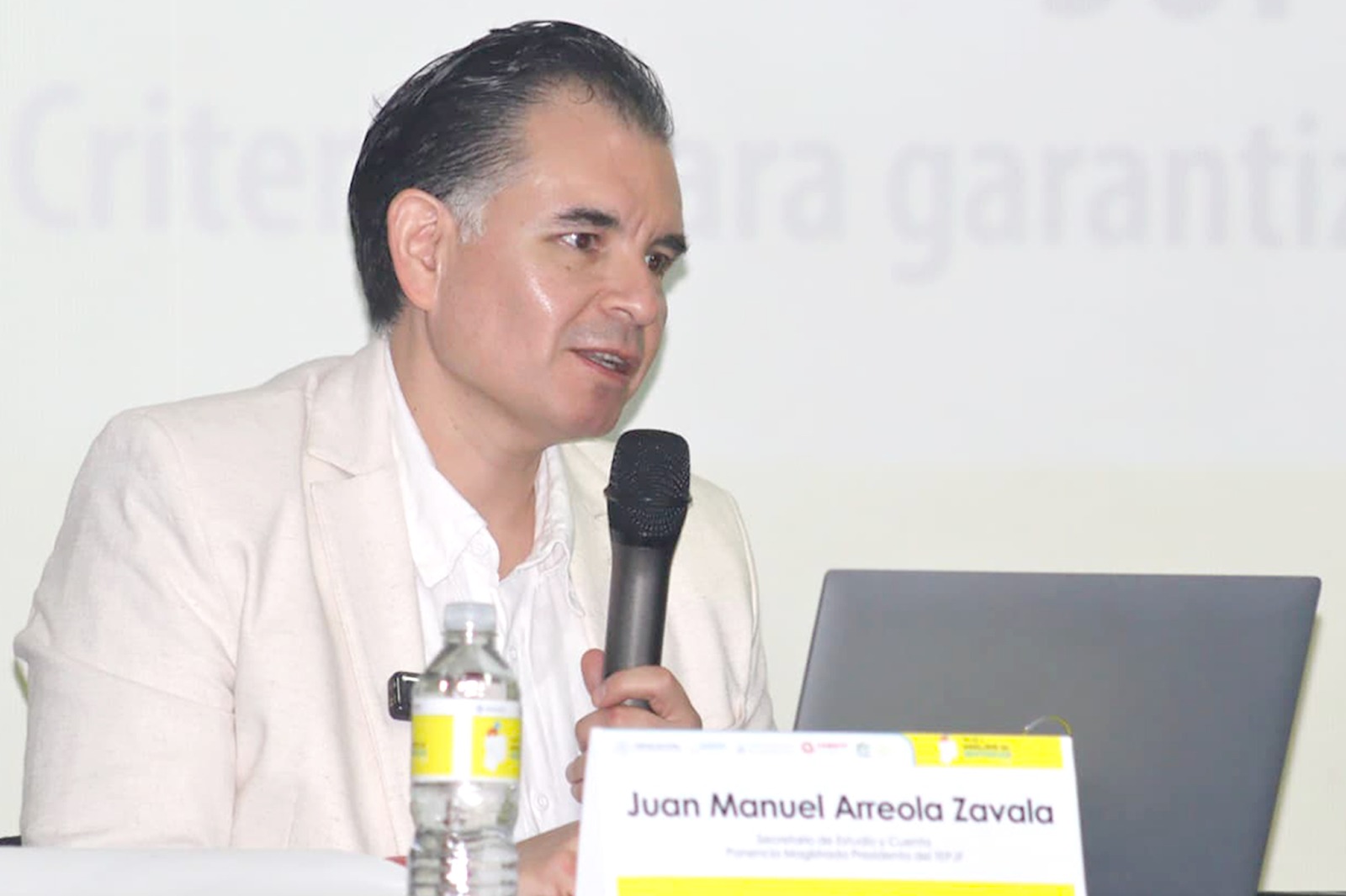 El análisis de la sentencia -SUP-JE/101/2025 y Acumulados- estuvo a cargo de Juan Manuel Arreola Zavala, Secretario de Estudio y Cuenta adscrito a la ponencia de la Magistrada Presidenta del TEPJF, Mónica Aralí Soto Fregoso, quien profundizó en los criterios establecidos por el Tribunal para garantizar condiciones de equidad en la contienda de personas juzgadoras durante el Proceso Electoral Extraordinario del Poder Judicial de la Federación.