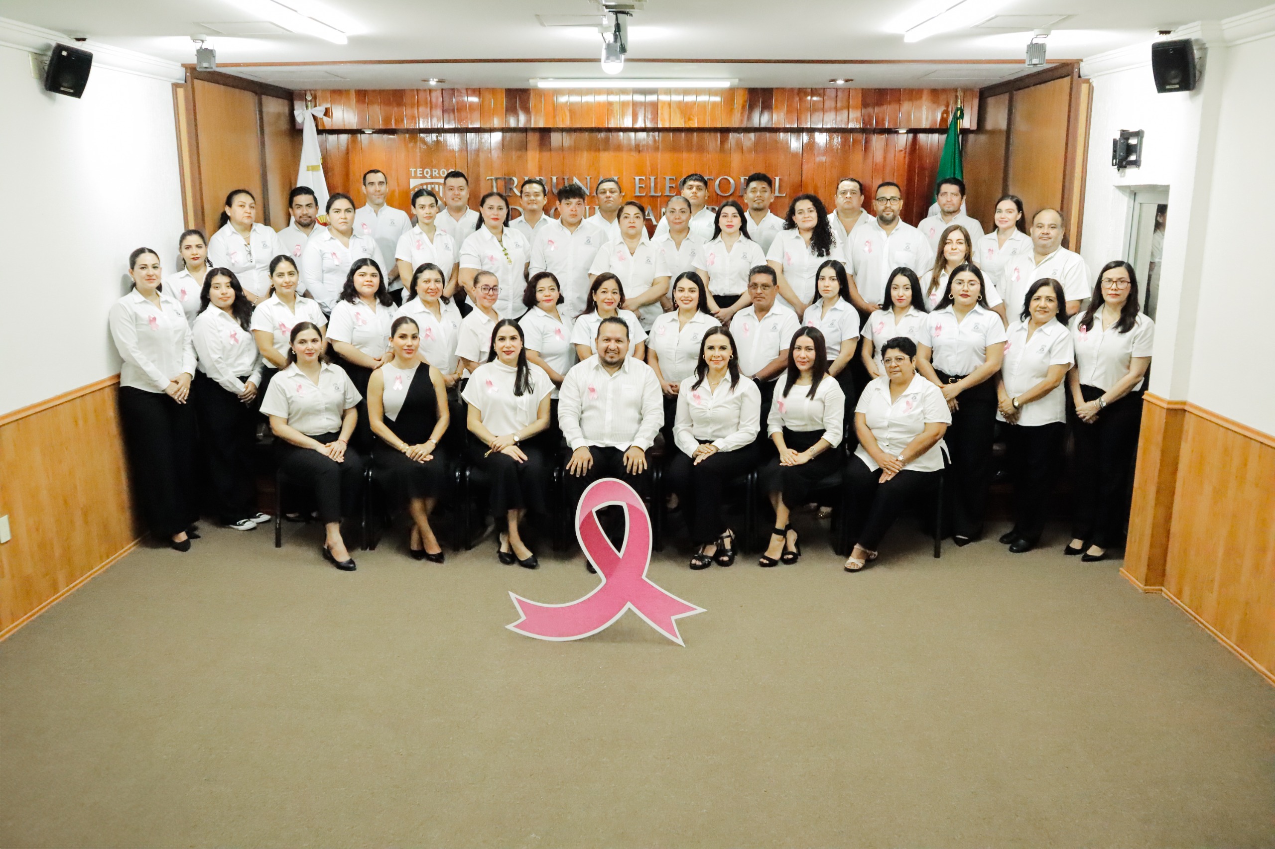 Chetumal, Quintana Roo, a 01 de octubre de 2025.- El Tribunal Electoral de Quintana Roo (TEQROO) se suma a la conmemoración del Mes de Sensibilización sobre el Cáncer de Mama, también conocido como Octubre Rosa, un movimiento mundial que tiene como objetivo crear conciencia sobre esta enfermedad, promover la detección temprana, el diagnóstico y el tratamiento oportuno.