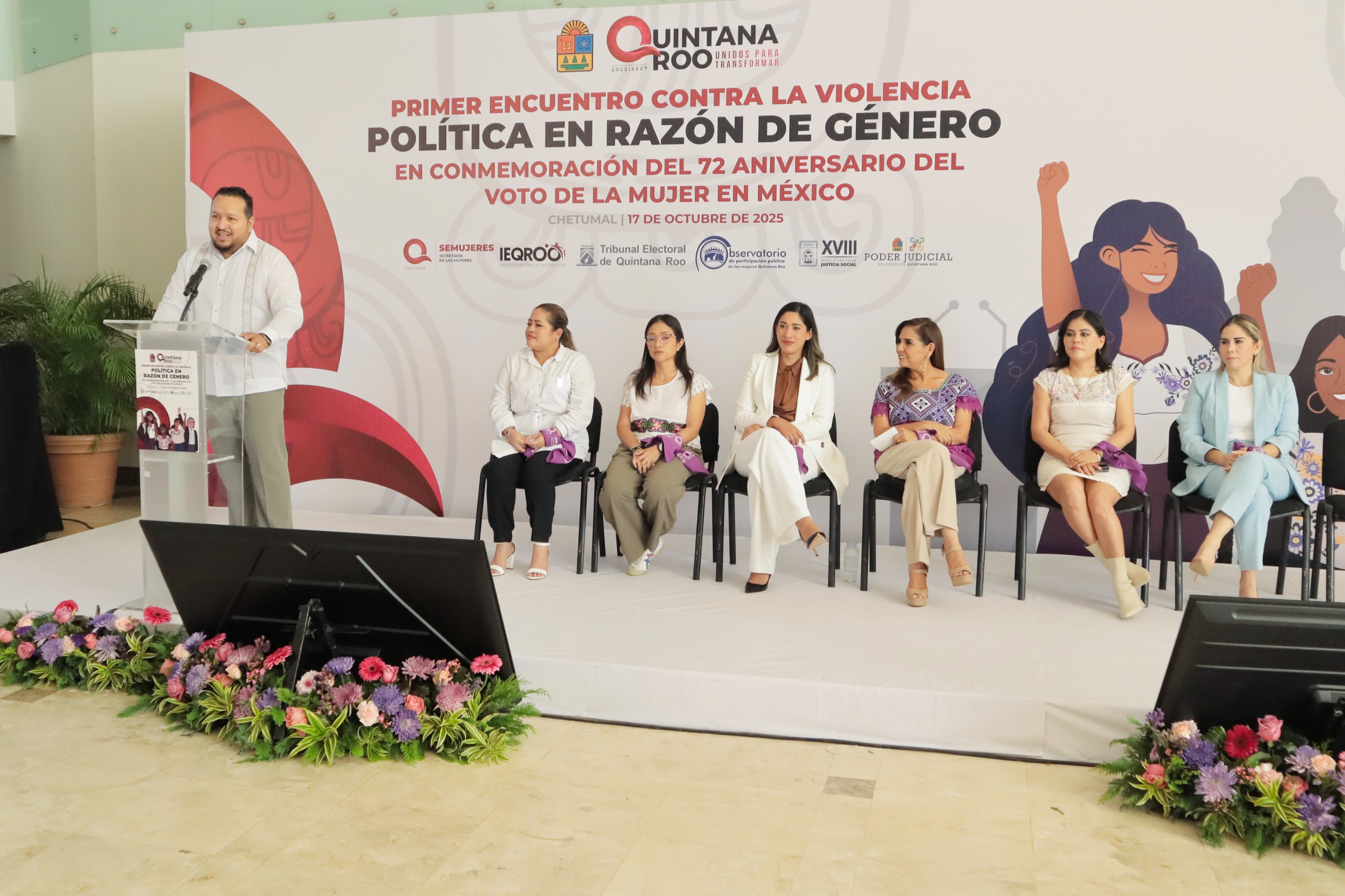 El evento se realizó en el Lobby del Centro de Convenciones de Chetumal, como parte de la conmemoración del 72º aniversario del reconocimiento del voto de la mujer en México. En su mensaje, la Gobernadora Mara Lezama reafirmó su compromiso con la erradicación de la violencia política y la promoción activa de los derechos de las mujeres en la vida pública.