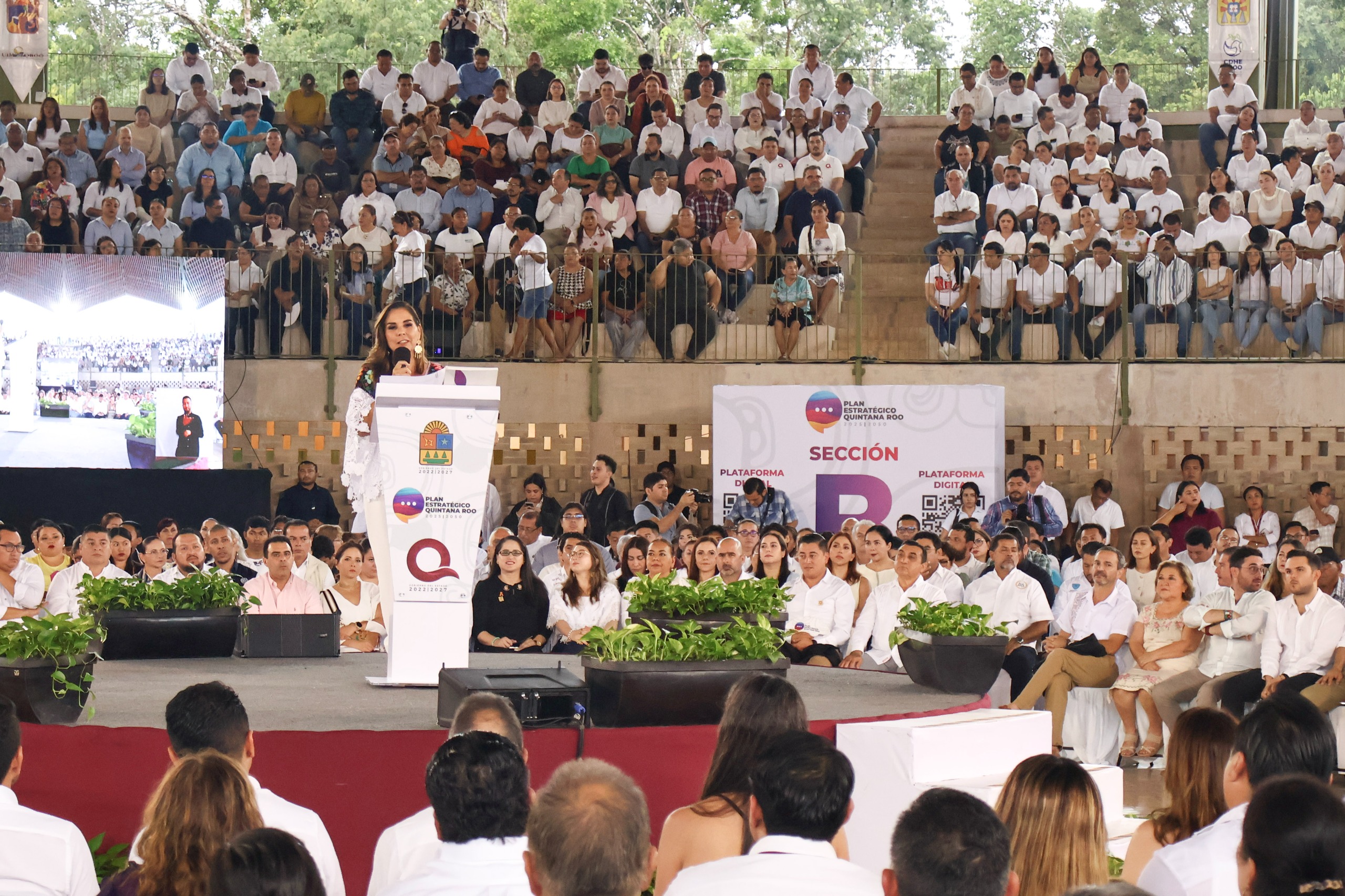 Chetumal, Quintana Roo, a 08 de diciembre de 2025.- Integrantes del Pleno del Tribunal Electoral de Quintana Roo (TEQROO) asistieron a la Presentación del Plan Estratégico Quintana Roo 2025–2050, encabezada por la Gobernadora del Estado, Mara Lezama Espinosa.