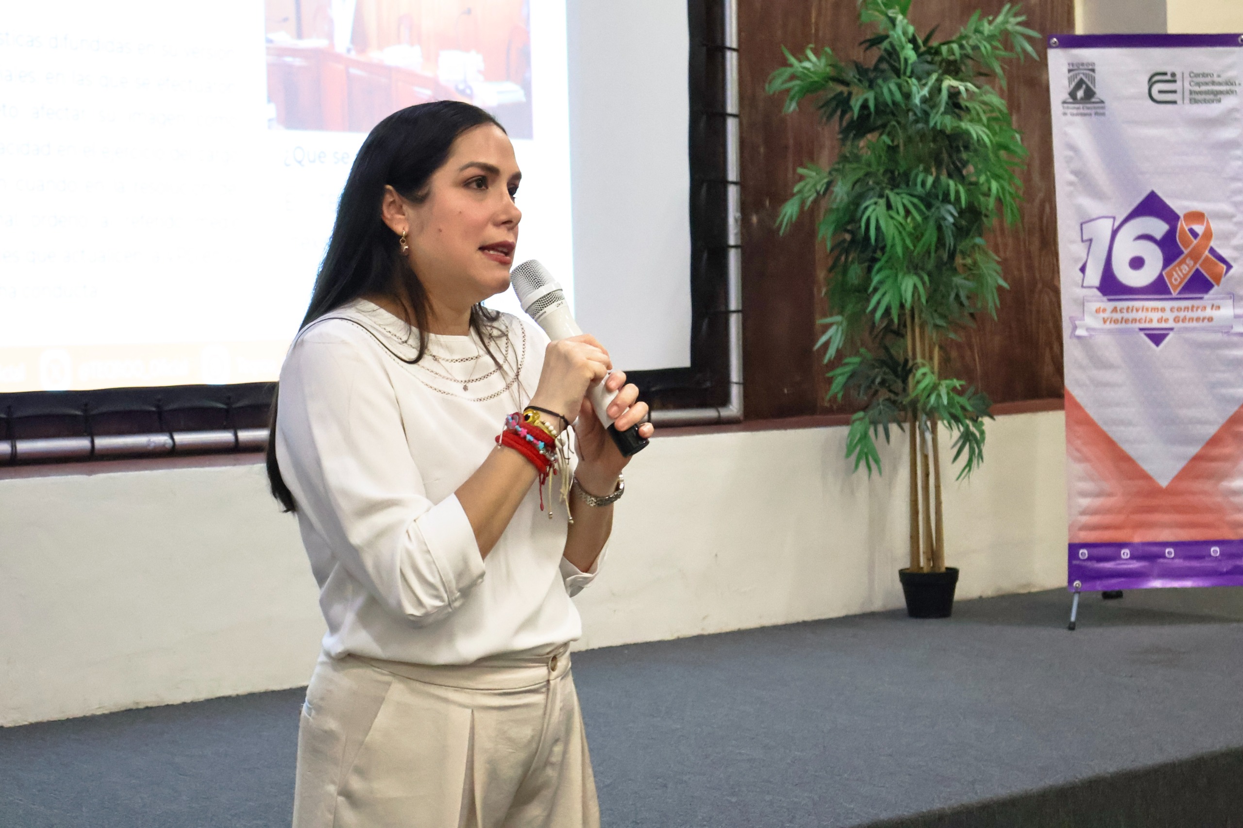 Como parte del programa, la Magistrada Claudia Ávila Graham impartió la conferencia “Violencia Política contra las Mujeres en Razón de Género”, en la que expuso los avances normativos, los mecanismos de denuncia disponibles y los principales retos para erradicar esta forma de violencia que vulnera el ejercicio de los derechos de las mujeres en la vida pública. Al finalizar, se abrió un espacio de diálogo con las personas asistentes.