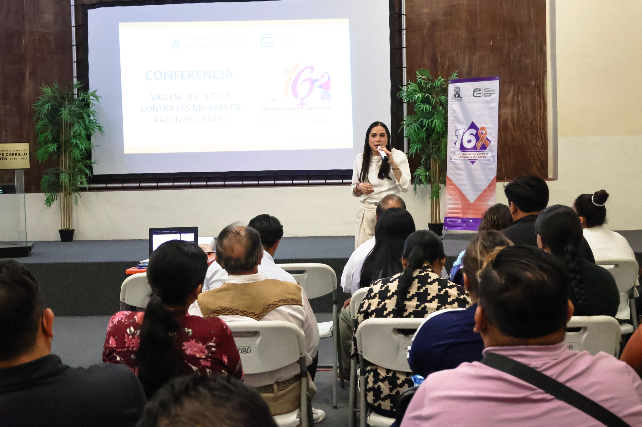Felipe Carrillo Puerto, Quintana Roo, a 9 de diciembre de 2025.- En el marco de la campaña internacional “16 días de activismo contra la violencia de género”, el Tribunal Electoral de Quintana Roo (TEQROO) y el Ayuntamiento de Felipe Carrillo Puerto llevaron a cabo la firma de un convenio de colaboración en materia electoral, seguida de la conferencia “Violencia Política contra las Mujeres en Razón de Género”, con el propósito de fortalecer la democracia, los derechos político-electorales y las acciones institucionales para prevenir la violencia contra las mujeres.