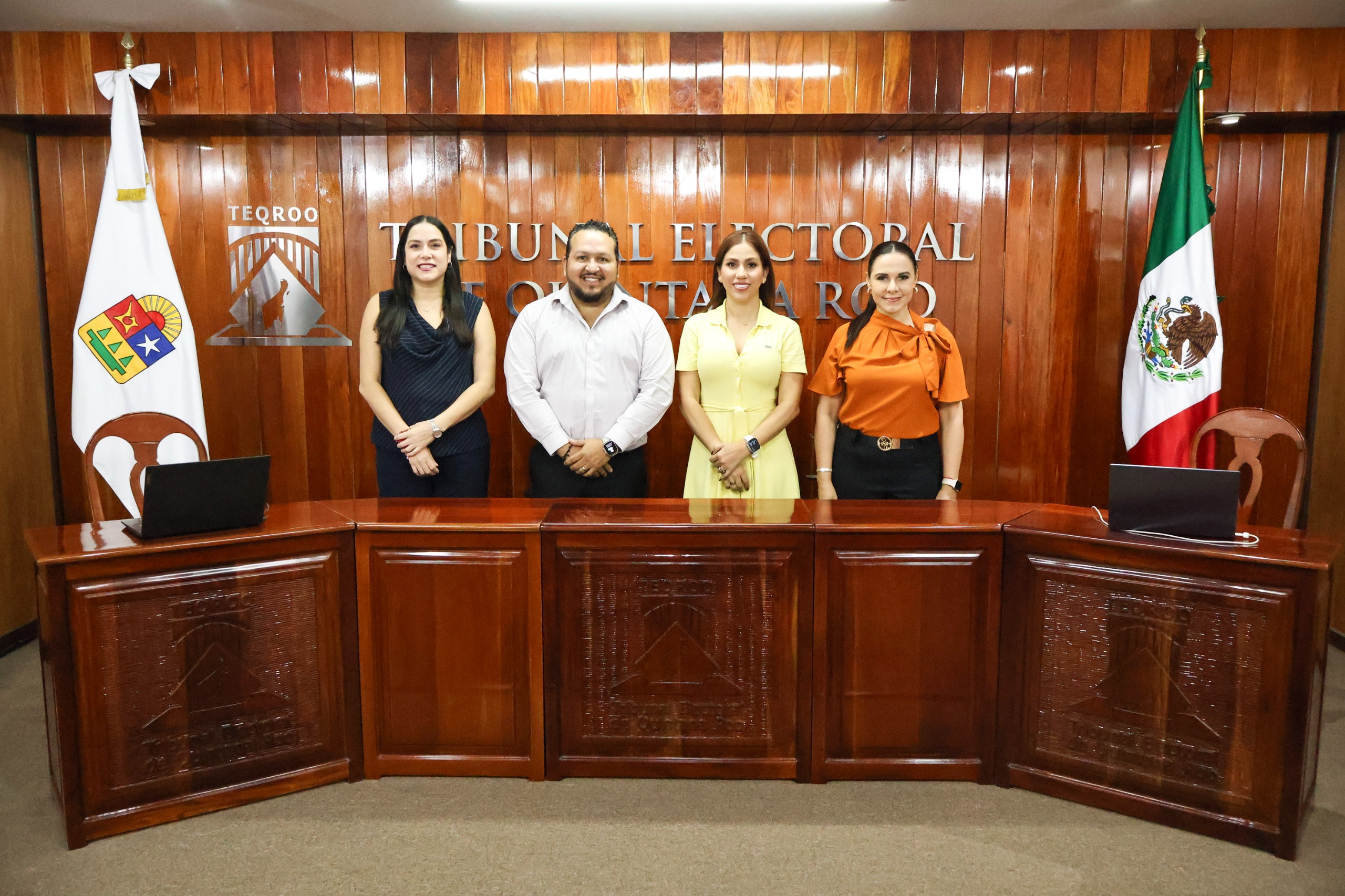 Chetumal, Quintana Roo, a 10 de diciembre de 2025.- El Magistrado Presidente del Tribunal Electoral de Quintana Roo (TEQROO), Sergio Avilés Demeneghi; las Magistradas Claudia Ávila Graham y Thalía Hernández Robledo, así como la Titular del Órgano Interno de Control (OIC), Ilse Berenice Cossío Lugo, presenciaron la jornada de votación para la elección de las y los integrantes del Comité de Ética del Tribunal.