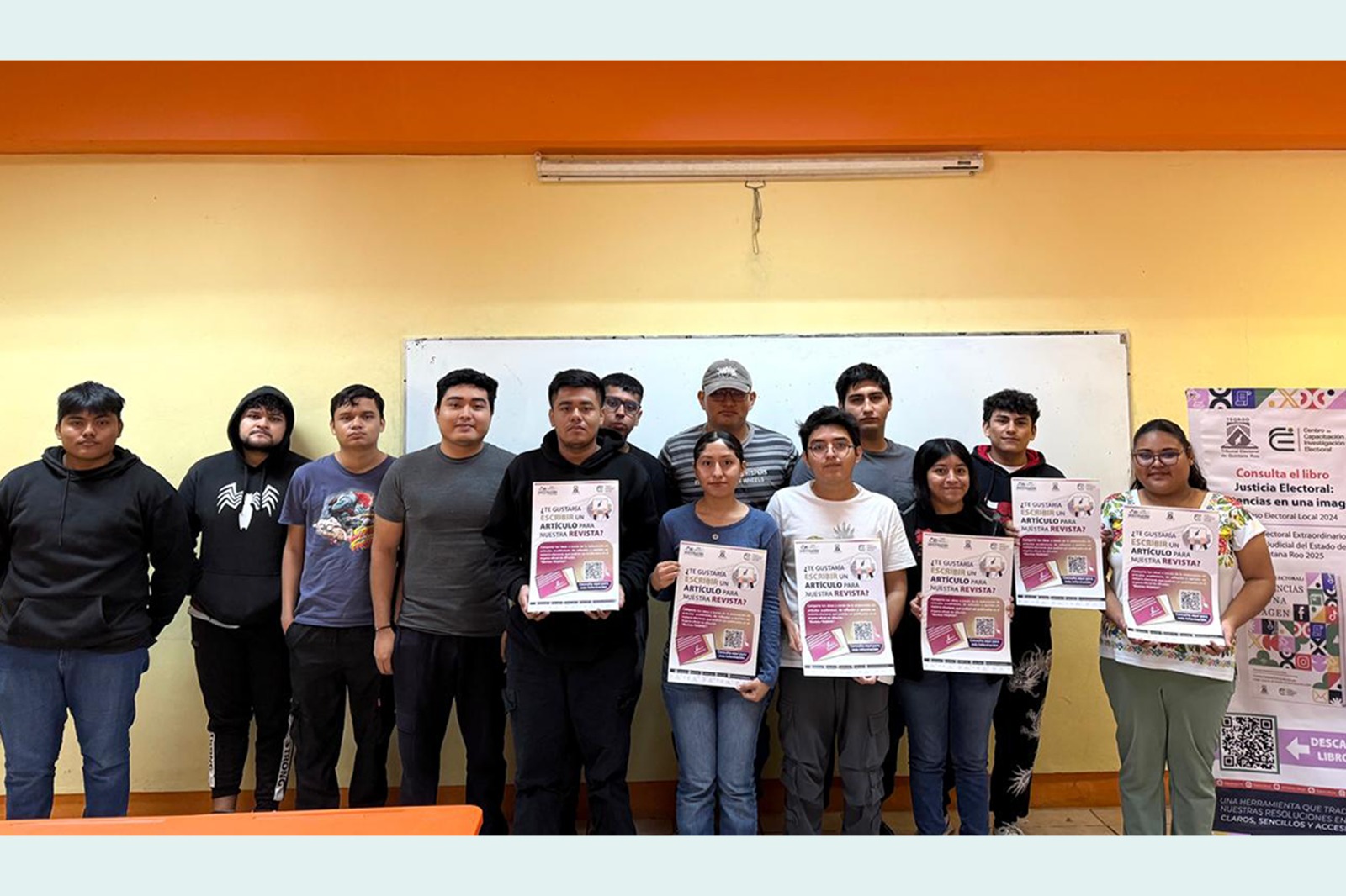 Chetumal, Quintana Roo, 11 de marzo de 2026.- Con el propósito de promover la participación ciudadana y fortalecer la cultura democrática, el Tribunal Electoral de Quintana Roo (TEQROO) visitó a estudiantes y personal académico del Instituto Tecnológico de Chetumal (ITCH) para invitarlos a colaborar con artículos de opinión, reflexión o investigación en materia electoral para la Revista Digital TEQROO, publicación cuatrimestral de este órgano jurisdiccional.