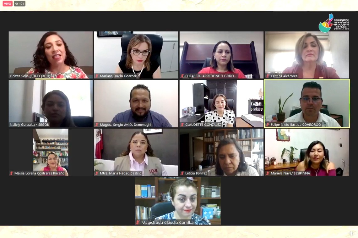 Chetumal, Quintana Roo a 06 de marzo de 2023.- El Magistrado Presidente del Tribunal Electoral de Quintana Roo (TEQROO), Sergio Avilés Demeneghi; la Magistrada Claudia Carrillo Gasca y personal de las diversas áreas de este órgano jurisdiccional participaron de manera virtual en la Conferencia Magistral “La protección de los derechos de las niñas y mujeres indígenas y la Recomendación General 39 del Comité para la Eliminación de la Discriminación contra la Mujer (CEDAW), que impartió Leticia Bonifaz Alfonso, Experta del Comité de la CEDAW.