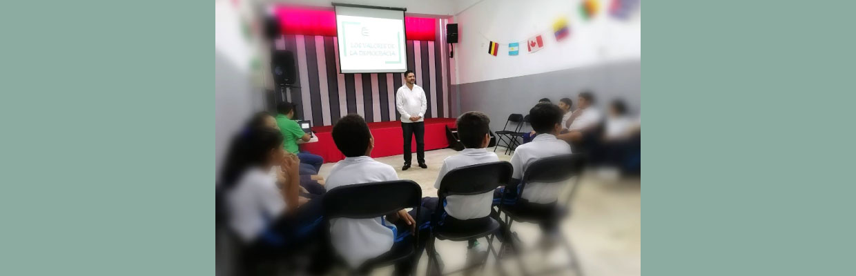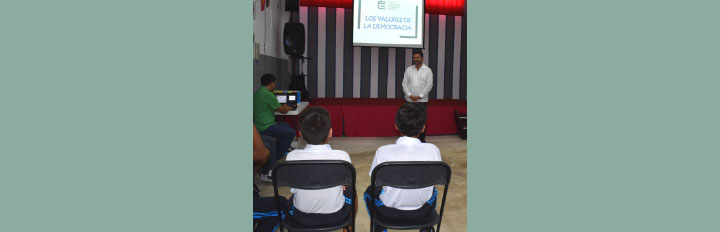 La plática se realizó en la Sala Audiovisual del Colegio Bernardette ante la presencia de la maestra de 5º y 6º grado de primaria, Ezri Morcillo García. Las alumnas y los alumnos recibieron material didáctico para reforzar el significado de los valores democráticos.