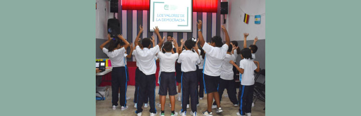 Apoyado de una presentación didáctica explicó a los estudiantes el valor de la libertad, igualdad, justicia, legalidad, imparcialidad, certeza, equidad, pluralismo, honestidad, diálogo, tolerancia, respeto y empatía.