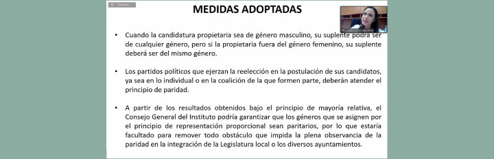Afirmó que es necesaria la paridad en la postulación de candidaturas, en la integración de los órganos de representación y en estructuras orgánicas.