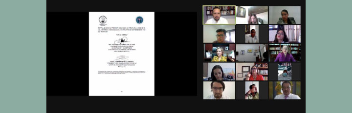 Chetumal, Quintana Roo a 24 de septiembre de 2021.- El Magistrado del Tribunal Electoral de Quintana Roo (TEQROO), Sergio Avilés Demeneghi y la Magistrada Claudia Carrillo Gasca presenciaron de manera virtual la Firma de Convenio entre la Asociación de Magistradas y Magistrados Electorales Locales de los Estados Unidos Mexicanos, A.C. (AMMEL) y la Barra de Abogados Electorales de México A.C., así como la Conferencia “Sistema punitivo electoral”.