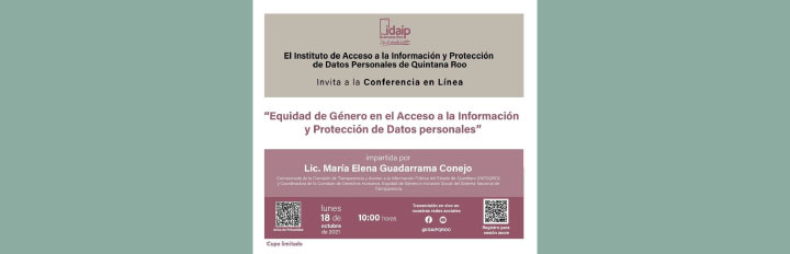 Chetumal, Quintana Roo a 18 de octubre de 2021.- La jefa de la Unidad de Transparencia del Tribunal Electoral de Quintana Roo (TEQROO), Karla Noemí Cetz Estrella participó en la Conferencia virtual “Equidad de Género en el Acceso a la Información y Protección de Datos Personales”, organizada por el Instituto de Acceso a la Información y Protección de Datos Personales de Quintana Roo (IDAIPQROO).