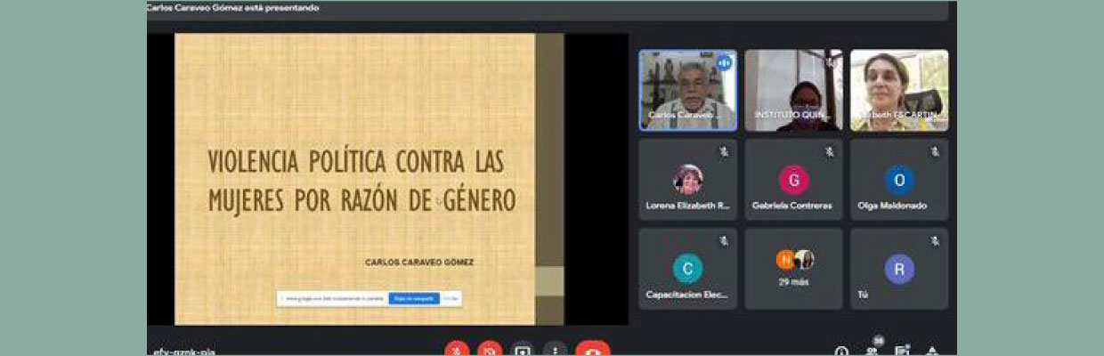 Chetumal, Quintana Roo a 26 de octubre de 2021.- El Jefe de la Unidad de Capacitación e Investigación del Tribunal Electoral de Quintana Roo (TEQROO), Carlos José Caraveo Gómez impartió la conferencia virtual “Violencia Política contra las Mujeres por Razón de Género” dentro del marco del Taller de Empoderamiento y Liderazgo para las Mujeres, organizado por el Instituto Quintanarroense de la Mujer (IQM).