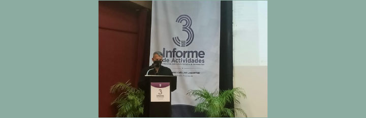 Chetumal, Quintana Roo a 03 de diciembre de 2021.- El Magistrado Presidente del Tribunal Electoral de Quintana Roo (TEQROO), Sergio Avilés Demeneghi asistió al 3er Informe de Actividades del Magistrado Presidente del Tribunal de Justicia Administrativa (TJA), Alfredo Cuéllar Labarthe, realizado en el Planetario de la ciudad Yook’ol Kaab.