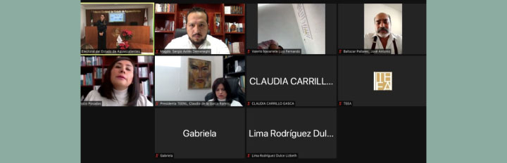 Chetumal, Quintana Roo a 06 de diciembre de 2021.- El Magistrado Presidente del Tribunal Electoral de Quintana Roo (TEQROO), Sergio Avilés Demeneghi y la Magistrada Claudia Carrillo Gasca participaron en la conferencia virtual "Manifestaciones de la violencia política de género en las contiendas electorales", organizado por la Asociación de Magistradas y Magistrados Electorales Locales de los Estados Unidos Mexicanos (AMMEL) y el Tribunal Electoral del Estado de Aguascalientes.