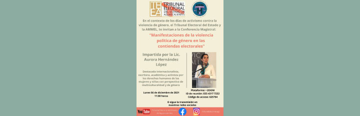 Esta conferencia se realizó en el marco de los 16 Días de Activismo contra la violencia de género, teniendo como ponente a Aurora Hernández López, Destacada Internacionalista, escritora, académica y activista por los Derechos Humanos de las Mujeres y Niñas con perspectiva de multiculturalidad y de género.