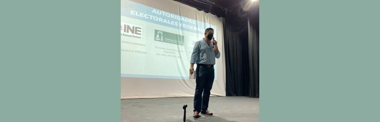 Chetumal, Quintana Roo a 21 de enero de 2022.- El Magistrado del Tribunal Electoral de Quintana Roo, Víctor Vivas Vivas impartió la plática “Blindaje Electoral” ante servidoras y servidores públicos del Municipio de Benito Juárez.
