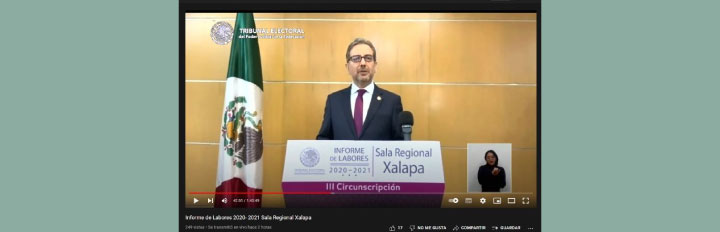 Dicho informe lo presentó ante las y los integrantes del Pleno de la Sala Superior del TEPJF y del Pleno de la Sala Regional Xalapa, la Magistrada Eva Barrientos Zepeda y el Magistrado Adín Antonio de León Gálvez y fue transmitido por videoconferencia a través de las redes sociales del TEPJF.