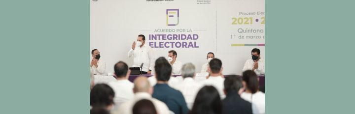 “Por ello, los invito a respetar y responder a este Acuerdo por la Integridad Electoral, con lo que abonaremos al fortalecimiento de la democracia, la cual requiere la suma de las voluntades de todas y todos los involucrados y que establezcamos las sinergias institucionales de coordinación y franco respeto al marco jurídico, para que la ciudadanía quintanarroense sepa que sus autoridades electorales son y serán los garantes de la legalidad y la cultura democrática”, destacó.