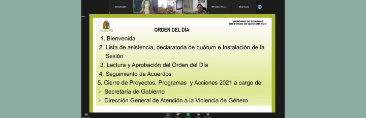 En esta sesión, las y los integrantes dieron seguimiento a los acuerdos y cerraron Proyectos, Programas y Acciones 2021 a cargo de la Secretaría de Gobierno y la Dirección General de Atención a la Violencia de Género.
