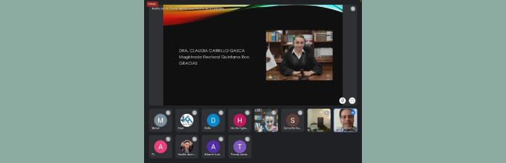 Chetumal, Quintana Roo a 02 de abril de 2022.- La Magistrada del Tribunal Electoral de Quintana Roo (TEQROO), Claudia Carrillo Gasca impartió la plática “Evolución del Sistema Político Electoral Mexicano”, ante el estudiantado de la Universidad Veracruzana (UV), a invitación del consejero del Instituto Nacional Electoral (INE), Roberto Ruiz Saldaña.