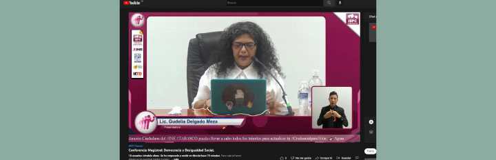 Esta conferencia es organizada por el Instituto Electoral y de Participación Ciudadana de Tabasco (IEPC de Tabasco), el Instituto Nacional Electoral y la Universidad Nacional Autónoma de México, como parte de las Jornadas por la Promoción y Fortalecimiento de la Democracia y la cultura Cívica.