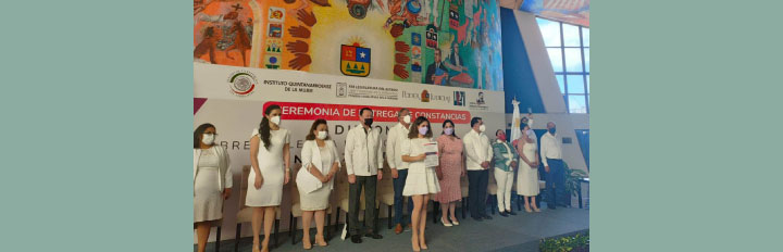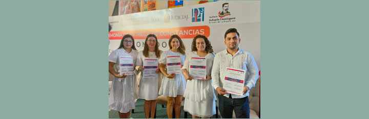 Por parte del TEQROO, cursaron esta capacitación Martha Patricia Villar Peguero, Jefa del Área de Capacitación; Carla Adriana Mingüer Marqueda, Secretaria Auxiliar de Estudio y Cuenta; María Eugenia Hernández Lara, Auxiliar Administrativo; Montserrat Alejandra González, Auxiliar Jurídica y Guillermo Hernández Cruz, Secretario Auxiliar de Estudio y Cuenta, por lo que hoy recibieron las Constancias de dicho diplomado en el Vestíbulo Mural del Congreso del Estado, evento al que asistió Mario Humberto Ceballos Magaña, Jefe de la Unidad de Capacitación e Investigación en representación del Magistrado Presidente, Sergio Avilés Demeneghi.