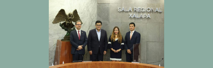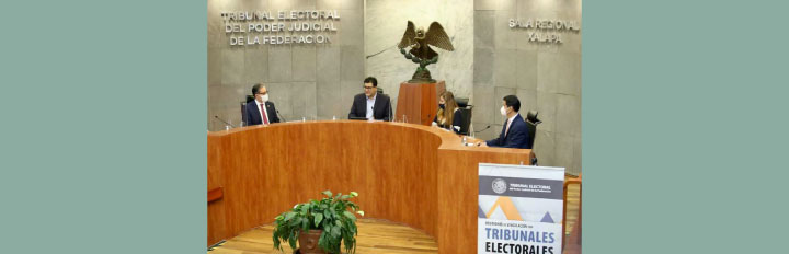 Lo acompañaron en la mesa del presídium la Magistrada Presidenta Interina de la Sala Regional Xalapa del TEPJF, Eva Barrientos Zepeda, el Magistrado Enrique Figueroa Ávila y José Antonio Troncoso Ávila, Magistrado en Funciones, ambos integrantes de dicha sala regional.