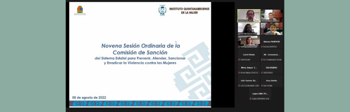 Chetumal, Quintana Roo a 08 de agosto de 2022.- El Jefe de la Unidad de Capacitación e Investigación, Mario Humberto Ceballos Magaña asistió en representación del Tribunal Electoral de Quintana Roo, a la Novena Sesión Ordinaria de la Comisión de Sanción del Sistema Estatal para Prevenir, Atender, Sancionar y Erradicar la Violencia contra las Mujeres (PASEVCM), la cual fue convocada por Instituto Quintanarroense de la Mujer.