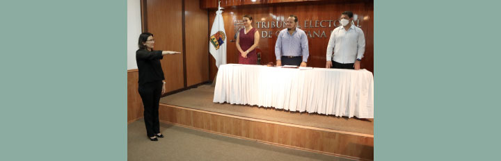 En esta ceremonia realizada en la Sala de Plenos “Lic. Carlos José Caraveo Gómez” de este Tribunal, el Magistrado Presidente Avilés Demeneghi fue el encargado de tomar la protesta de Ley a la servidora pública electoral.