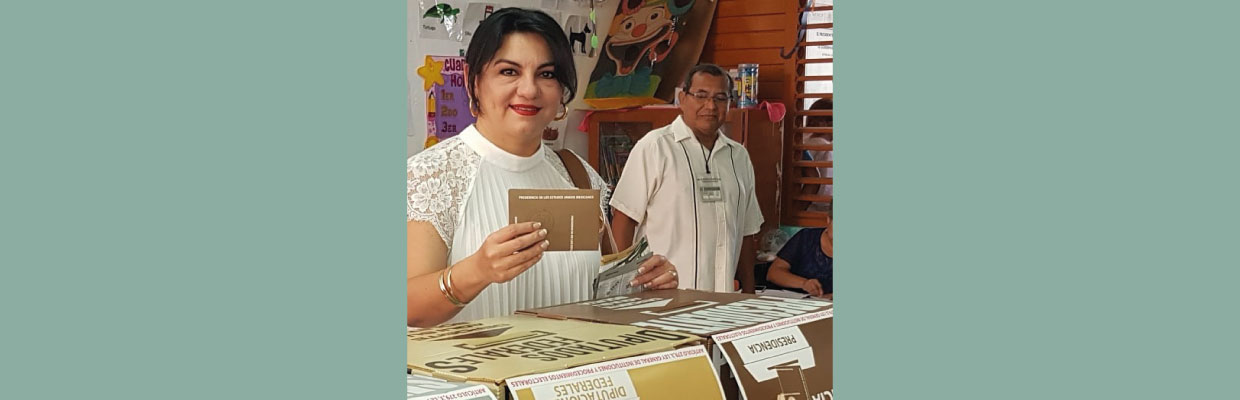 Chetumal, Q. Roo a 01 de julio de 2018.- La Magistrada Presidenta del Tribunal Electoral de Quintana Roo, Nora Cerón González y los Magistrados Vicente Aguilar Rojas y Víctor Vivas Vivas acudieron a emitir su voto la mañana de este 1º de julio en sus respectivas casillas en la ciudad de Chetumal.Cerón González acudió a emitir su voto en la casilla número 0377, ubicada en la escuela primaria Aquiles Serdán, en la Avenida Adolfo López Mateos número 416, en la Ciudad de Chetumal.