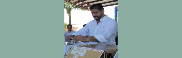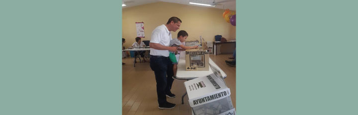 Cerón González acudió a emitir su voto en la casilla número 0377, ubicada en la escuela primaria Aquiles Serdán, en la Avenida Adolfo López Mateos número 416, en la Ciudad de Chetumal.