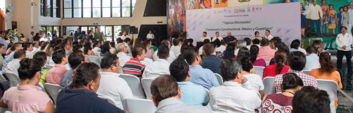 Chetumal, Q. Roo a 06 de noviembre de 2018.- El Tribunal Electoral de Quintana Roo en coordinación con el Congreso del Estado presentaron los libros Tópicos Electorales y Centenario Constitucional. México y Querétaro, con la presencia de los coordinadores de estas obras, Santiago Nieto Castillo y Luis Octavio Vado Grajales.