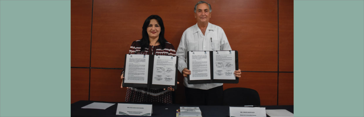 oTambién firmaron este convenio de colaboración María Teresa Urzaiz Duch, directora de la Universidad Modelo Chetumal y José Alberto Muñoz Escalante, Secretario General de Acuerdos del Tribunal Electoral de Quintana Roo.