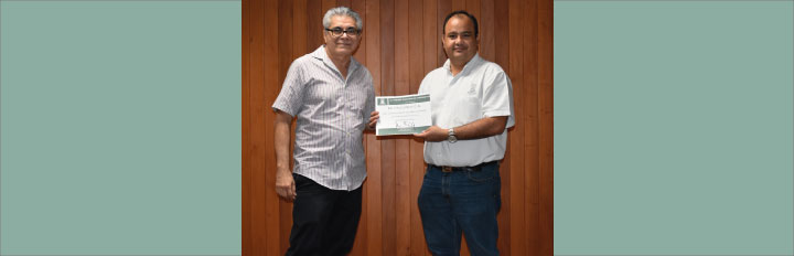 oAl concluir esta jornada de capacitación, el jefe de la Unidad de Capacitación e Investigación, Carlos José Caraveo Gómez entregó un reconocimiento al ponente Carlos Alberto Villanueva Cervera.