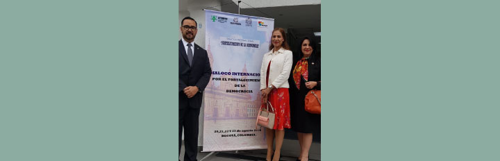 Chetumal, Q. Roo a 22 de agosto de 2019.- La Magistrada Presidenta del Tribunal Electoral de Quintana Roo, Nora Cerón González participo como exponente en el Diálogo Internacional por el Fortalecimiento de la Democracia en Colombia, con el tema ?La Justicia Abierta, asignatura pendiente en la Justicia Electoral?, en el Centro de Investigaciones Jurídicas y Desarrollo Sostenible, encuentro organizado por la Asociación de Tribunales Electorales de la República Mexicana y la Registraduría Nacional del Estado Civil de Colombia.