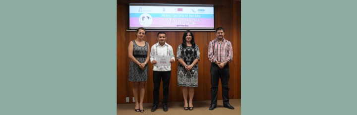 oAl finalizar la intervención de los participantes Alba Valeria Cabrera Várguez, Rene Neftaly Uch Uc, Daniela Canche Vela y Jesús Liborio Chan Nahuat, todos estudiantes de la Universidad de Quintana Roo, el Jurado Calificador delibero para dar a conocer a los ganadores: Alba Valeria Cabrera Várguez y Jesús Liborio Chan Nahuat.